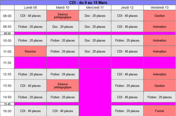 Pour consulter l'emploi du temps du CDI et réserver sa place : https://0421454c.iddocs.fr/