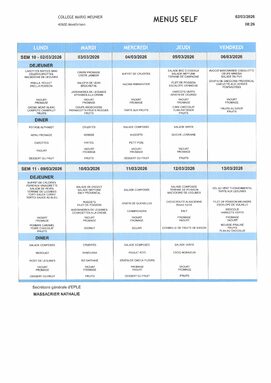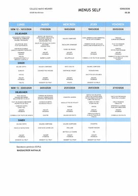 Par Nathalie Massacrier, publié le jeudi 11 septembre 2025 10:44 - Mis à jour le lundi 2 mars 2026 08:32Menus PREVISIONNELS du 2 mars au 13 mars 2026