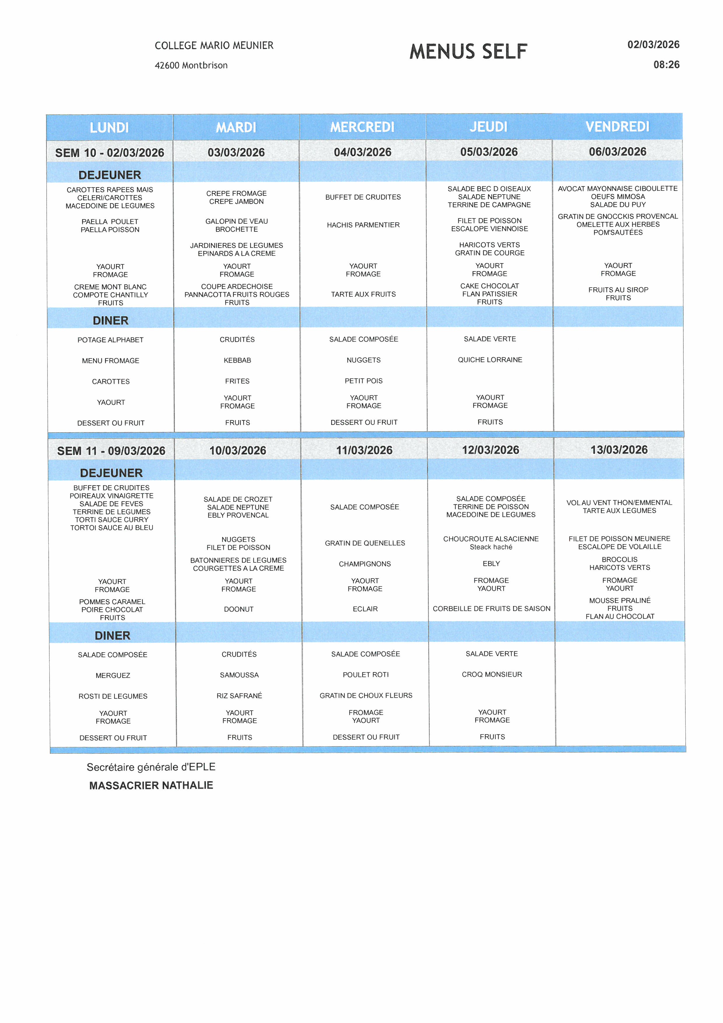 Menus PREVISIONNELS du 2 mars au 13 mars 2026