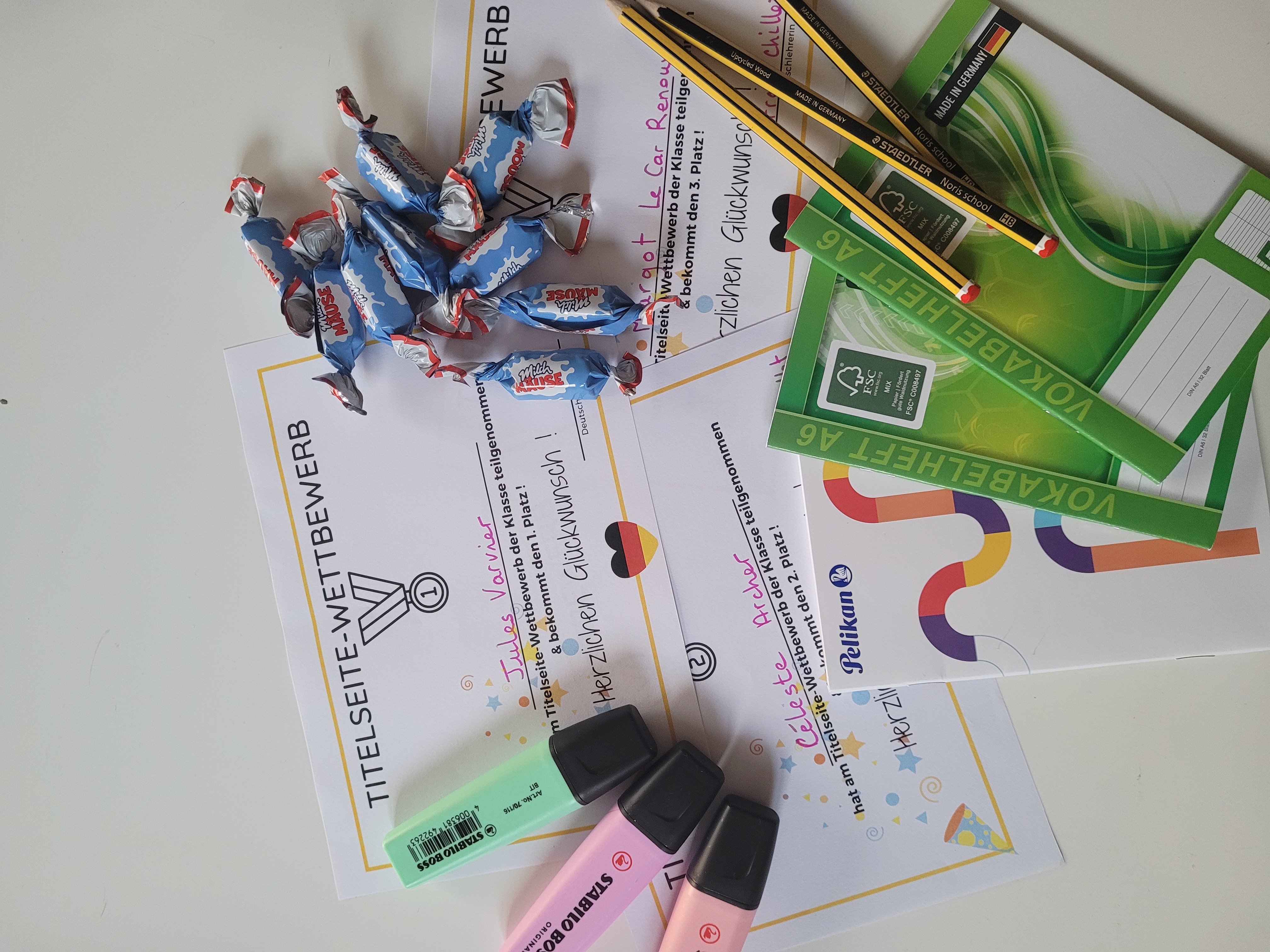 Les 19 élèves germanistes de 5è ont réalisé une page de garde pour leur cahier d'allemand et les votes ont eu lieu.